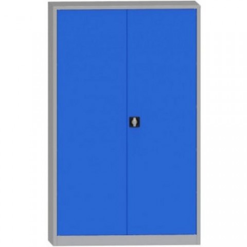 Svařovaná dvoudvéřová skříň v šedo-modrém barevném provedení. Součástí jsou 4 výškově stavitelné police, každá z nich disponuje nosností 100 kg. Uzavírání pomocí 3-bodového zámku.Svařovaná kovová dílenská skříň, 195 x 120 x 50 cm, 4 police, nosnost 100 kg/police, šedá/světle modrá