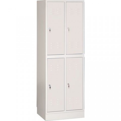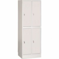 Svařované boxové šatní skříňky v několika barevných variantách, vhodné pro odkládání věcí na pracovištích, převlékárnách nebo sportovních klubech. Účinné odvádění vlhkosti z oděvů větracími otvory. Dvířka boxů jsou zavěšena na vnitřních pantech. Uzamykání každého boxu cylindrickým zámkem s možností výměny za otočný uzávěr (nutné dokoupit zvlášť). Možnost umístění štítku se jménem na dvířka.Svařované šatní skříně Sam, 4 oddíly, cylindrický zámek