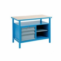 Dílenský pracovní stůl Rivt je složen z kontejneru, pracovní desky a ocelové konstrukce. Kontejner je rozdělen na část se třemi centrálně uzamykatelnými policemi, které jsou uloženy na kuličkových výsuvech a část s policí na odkládání. Povrch kovových částí ponku je upraven práškovou barvou.Svařovaný dílenský stůl Rivt, 85 x 120 x 60 cm