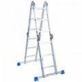 Kloubový hliníkový žebřík ze čtyř dílů po čtyřech příčkách, vhodný pro profesionální použití. Možnost sestavení jako opěrný žebřík, stojací štafle nebo lešení. Pracovní výška lešení je 3,16 m; štaflí 3,62 m a opěrného žebříku 5,4 m. Celková výška lešení je 1,26 m; štaflí 2,32 m a opěrného žebříku 4,6 m. Nosnost lešení je 105 kg, v pozici štaflí nebo opěrného žebříku 150 kg. Žebřík je opatřen ochrannými patkami.Kloubový hliníkový žebřík, 4 x 4 příčky