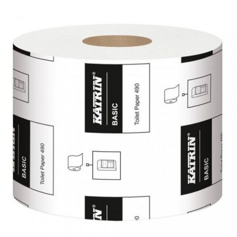 Dvouvrstvý WC papír vyrobený z recyklovaného papíru. Vhodný na toalety s nízkou a střední frekvencí návštěvnosti.Toaletní papír Katrin Basic 490, 2vrstvý, 486 útržků, recyklovaný, 36 ks