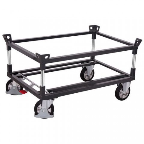 Transportní plošina s kovovou nástavbou z pozinkovaných trubek se záchytnými rohy a upevňovacími oky. Vhodná pro umístění palety nebo klecové palety. Nástavba je odnímatelná. 2 pevná a 2 otočná kola s brzdou EasySTOP. Elastická celopryžová kola na litém hliníkovém ráfku s přesnými kuličkovými ložisky.Transportní plošiny s nástavbou na palety, do 1 200 kg