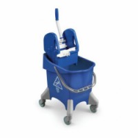 Úklidový kbelík s pákovým ždímačem pro třásňové mopy. Opatřen odnímatelnými kolečky o průměru 80 mm a plastovým úchytem.Úklidový kbelík na kolečkách s pákovým ždímačem, 30 l