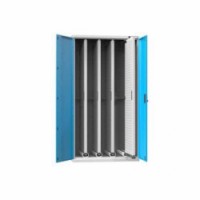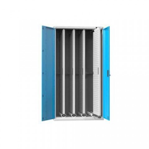 Výsuvné oboustranné perforované panely zajišťují flexibilní uložení předmětů a jsou opatřeny plnovýsuvy s tlumením při zasunutí. Mezery mezi panely jsou 172 mm ve skříni se čtyřmi perfopanely. Nosnost jednoho výsuvného perfopanelu je 75 kg. Perfopanely je vhodné opatřit závěsným programem, jehož jednotlivé prvky si můžete vybrat v naší široké nabídce. Vertikální skříně s výsuvnými perfopanely jsou zajištěny blokací, kdy při vysunutí jednoho perfopanelu zablokuje bezpečnostní mechanismus centrálního zamykacího mechanismu všechny ostatní perfopanely. Brání tak převrácení skříně dopředu.Vertikální skříně s výsuvnými perfopanely, 1044 x 655 x 1950 mm, 4 x panel