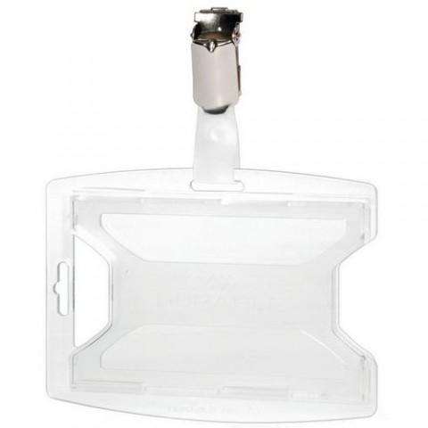 Odolný držák na přístupové karty s klipem je určen pro dvě karty s integrovaným otočným klipem. Vybaven bočním otvorem pro snadné vyjmutí karty. S otočným klipem pro rychlé a pohodlné upevnění, kompatibilní s řetízkem, textilní šňůrou nebo navijákem na odznaky. Vnitřní rozměry 54 x 85 mm, lze použít na výšku i na šířku.Visačky s klipem Durable