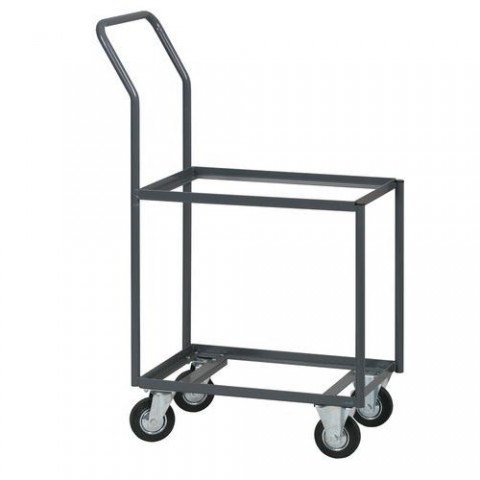 Vozík na přepravky bez ložné plochy je vyroben z ocelových trubek a profilů. Vhodné pro standardní typy přepravek. Pohyb zajišťují čtyři kola s valivými jehlovými ložisky, z nichž dvě jsou pevná a dvě otočná s ochrannými kryty. Povrchová úprava práškovým lakem.Vozík na přepravky bez ložné plochy, 2 police, do 200 kg
