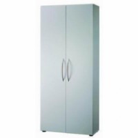 Skříně s dvířky s kovovými úchyty v matné povrchové úpravě. dezén: buk, světle šedá rozměry v x š x h: 188 x 80 x 35 cm materiál: laminovaná dřevotříska počet polic: 4 nosnost police: 25 kg provedení: s dvířky 2mm ABS hrany, desky tloušťky 16 mm (boční a horní desky) a 19 mm (police), dodáváno v demontovaném stavu (spojovací materiál součástí balení)Vysoké skříně Baron, 188 x 80 x 35 cm, s dvířky