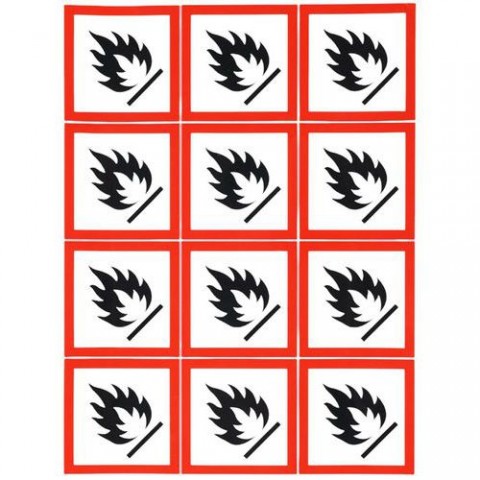 Výstražné CLP tabulky Manutan Expert - Hořlavý materiál, samolepicí