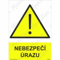 Bezpečnostní značení tabulkou, značkou nebo samolepkou "Nebezpečí úrazu" tiskneme na vysoce kvalitním materiálu, barvami s vysokou odolností proti otěru a UV záření. Tím zajišťujeme splnění požadavků Nařízení vlády č. 375/2017 Sb., ČSN ISO 3864-1, ČSN ISO 3864-2, ČSN ISO 3864-3, ČSN ISO 3864-4.Výstražné tabulky - Nebezpečí úrazu