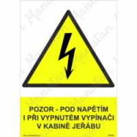 Výstražné tabulky - Pozor pod napětím i při vypnutém vypínači v kabině jeřábu