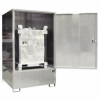 Záchytný box pro skladování IBC kontejneru ve vnitřním nebo venkovním krytém prostředí. Vybavený záchytnou vanou z ocelového plechu tl. 3 mm s pozinkovaným roštem. Krycí box z pozinkovaného plechu. Možnost uzamčení na klíč. Integrované nohy pro vysokozdvižný vozík. Záchytná vana se schválením DiBt.Záchytné kontejnery na kapaliny, kapacita 1 100 l