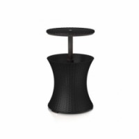 Zahradní servírovací stolek s integrovanou nádobou pro chlazení nápojů je skvělým doplňkem na každou zahradní párty a oslavu. Lze použít jako klasický odkládací stolek, nebo je možné stolek vysunout až do výšky 83 cm a použít s nádobou. Do nádoby stačí vysypat led a dát chladit nápoje. Vyrobený z plastu v imitaci ratanu. Maximální nosnost stolku je 50 kg ve složeném stavu. Odolný vůči povětrnostním vlivům a UV záření.Zahradní bary Rattan