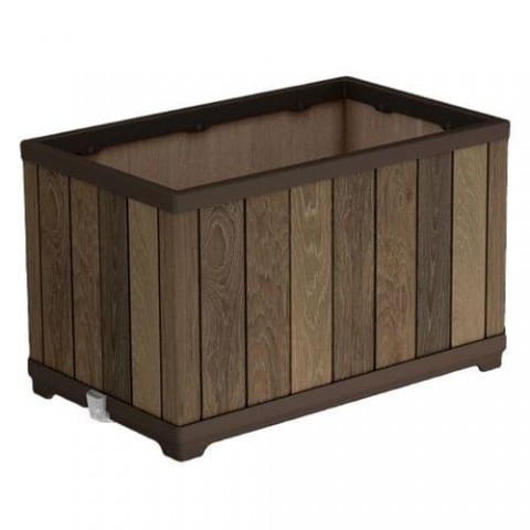 Květináč v dezénu vlašského ořechu je moderním a stylovým doplňkem pro Vaši zahradu či interiér. Vyroben je z pevnéhé plastu v dokonalé imitaci dřeva. Integrovaný inteligentní zavlažovací systém zajišťuje optimální hydrataci pro rostliny. Praktický odtokový kelímek indikuje hladinu vody, což usnadňuje péči o rostliny a snižuje potřebu časté zálivky. Bezúdržbový a odolný povrch je odolný vůči všem povětrnostním vlivům.Zahradní květináč Deco Rectangle, 45,5 x 76 x 45,5 cm, tmavě hnědý