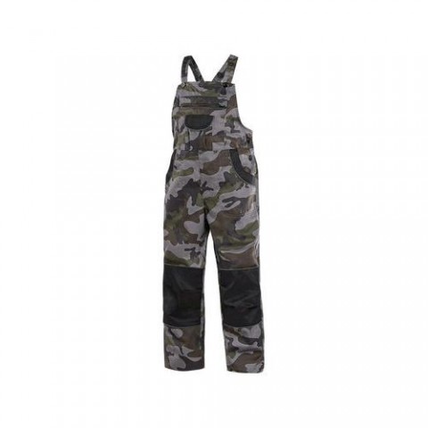 Dětské maskáčové kalhoty s náprsenkou, vybaveny zesílenými koleny a sedem pro delší životnost. Pas na knoflíky, vzadu do gumy, šle s gumou vzadu, náprsní kapsa na zip s menší kapsou, přední i zadní kapsy, boční kapsa, reflexní doplňky. Velikost: 100-90 Svrchní materiál: 65% polyester 35% bavlna Reflexní doplňky: Ano OEKO-TEX® STANDARD 100: AnoZahradníky CXS CAMO, dětské