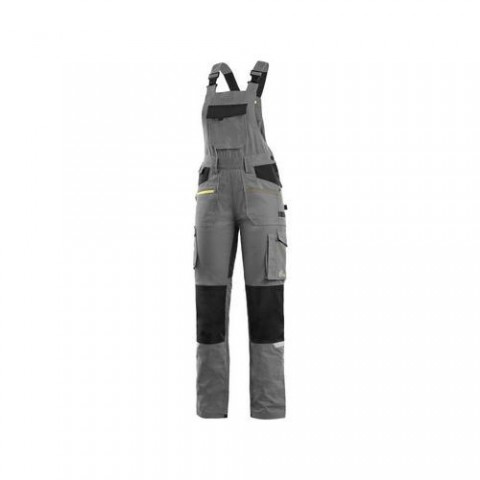 Dámské montérkové kalhoty s náprsenkou, strečová tkanina umožňující volný pohyb, náprsní kapsa s klopou, pas s poutky na opasek, přední kapsy s kapsou na zip, multifunkční kapsy na obou stranách, kolena zesílena 600D polyesterem, dvě zadní kapsy - jedna s klopou, zadní spodní lem nohavice vyztužen 600D polyesterem, šle s gumou vzadu, reflexní doplňky. Doporučené použití: strojírenství, stavebnictví, lehký průmysl, automobilový průmysl, logistika, skladová manipulace, spedice, autoservisy, údržba, montáže, zemědělství, zahrada, hobby. Velikost: 38-58 Svrchní materiál: 98 % bavlna 2 % elastan Reflexní doplňky: Ano OEKO-TEX® STANDARD 100: AnoZahradníky CXS STRETCH, dámské, šedo - černé