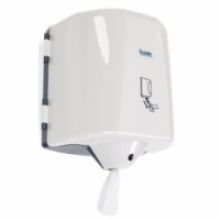 Dávkovač na papírové ručníky v rolích s moderním designem a velkou kapacitou. Vhodný do toalet, kuchyní a potravinářských provozů. Kapacita: 1 (max. průměr 20 cm).Zásobník na papírové ručníky v rolích Manutan Expert