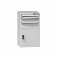 Zásuvková skříň je opatřená mechanismem centrálního zamykání a blokace zásuvek. Zásuvky jsou základním skladovacím prvkem, a proto splňují vysoké požadavky na pevnost a stabilitu. Korpusy zásuvkových skříní tvoří svařenec jednotlivých konstrukčních dílů z kvalitních ocelových plechů. Vnitřní konstrukce korpusů je opatřena perforací po 25 mm. Tuto perforaci využíváme k uchycení vodicích lišt zásuvek, jejich výškovému uspořádání a nakonfigurování požadované zásuvkové sestavy. Přestavování vodicích lišt nebo háčků polic probíhá jednoduše a velice rychle bez použití nástrojů.Zásuvkové skříně ZA2, 578 x 600 x 990 mm