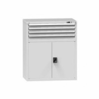 Zásuvková skříň je opatřená mechanismem centrálního zamykání a blokace zásuvek. Zásuvky jsou základním skladovacím prvkem, a proto splňují vysoké požadavky na pevnost a stabilitu. Korpusy zásuvkových skříní tvoří svařenec jednotlivých konstrukčních dílů z kvalitních ocelových plechů. Vnitřní konstrukce korpusů je opatřena perforací po 25 mm. Tuto perforaci využíváme k uchycení vodicích lišt zásuvek, jejich výškovému uspořádání a nakonfigurování požadované zásuvkové sestavy. Přestavování vodicích lišt nebo háčků polic probíhá jednoduše a velice rychle bez použití nástrojů.Zásuvkové skříně ZC1, 1037 x 600 x 1215 mm