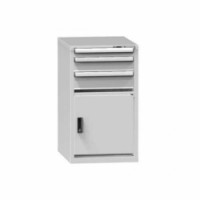 Zásuvková skříň je opatřená mechanismem centrálního zamykání a blokace zásuvek. Zásuvky jsou základním skladovacím prvkem, a proto splňují vysoké požadavky na pevnost a stabilitu. Korpusy zásuvkových skříní tvoří svařenec jednotlivých konstrukčních dílů z kvalitních ocelových plechů. Vnitřní konstrukce korpusů je opatřena perforací po 25 mm. Tuto perforaci využíváme k uchycení vodicích lišt zásuvek, jejich výškovému uspořádání a nakonfigurování požadované zásuvkové sestavy. Přestavování vodicích lišt nebo háčků polic probíhá jednoduše a velice rychle bez použití nástrojů.Zásuvkové skříně ZE2, 578 x 753 x 990 mm