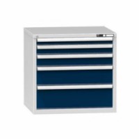 Zásuvková skříň je opatřená mechanismem centrálního zamykání a blokace zásuvek. Zásuvky jsou základním skladovacím prvkem, a proto splňují vysoké požadavky na pevnost a stabilitu. Korpusy zásuvkových skříní tvoří svařenec jednotlivých konstrukčních dílů z kvalitních ocelových plechů. Vnitřní konstrukce korpusů je opatřena perforací po 25 mm. Tuto perforaci využíváme k uchycení vodicích lišt zásuvek, jejich výškovému uspořádání a nakonfigurování požadované zásuvkové sestavy. Přestavování vodicích lišt nebo háčků polic probíhá jednoduše a velice rychle bez použití nástrojů.Zásuvkové skříně ZK5, 884 x 753 x 840 mm