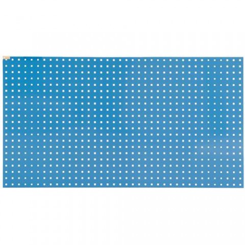 Perforovaný panel pro montáž držáků nástrojů a plastových boxů. Vyroben z plechu tl. 0,8 mm, povrchová úprava práškovým lakem v modré barvě RAL 5012. Otvory čtvercového tvaru 10 x 10 mm s roztečí 38 mm. Nosnost panelu 40 kg. Hloubka panelu 25 mm včetně výztuh.Závěsný panel na nářadí, 80 x 144,8 x 2,5 cm