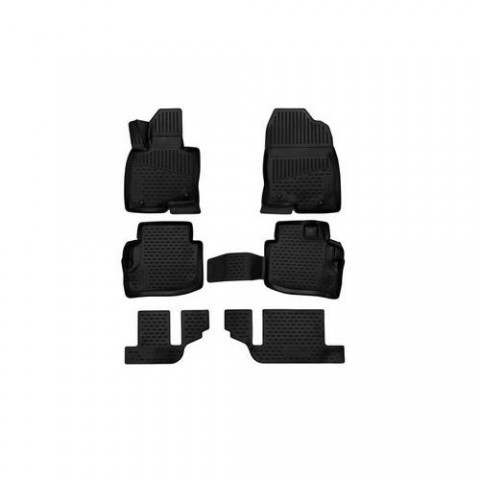 Koberce jsou vyrobeny přesně podle tvaru podlahových ploch konkrétního typu vozidla. Koberce jsou snadno omyvatelné, s rychlou možností vysypání nečistot a snadnou instalací. Vysoce odolná pryž zajišťuje kobercům vysokou pružnost, která zabezpečí při ohýbání (např. při skladování), že se koberce roztáhnou opět do původního tvaru. Výhodou těchto koberců je zvýšený okraj, chránící interiér interiéru vozidla před vysypáním sypkých materiálů či vylitím tekutin, apod. do interiéru vozidla, s odolností vůči prosáknutí olejů, benzínu a částečně také vůči elektrolytu z akumulátorů. Nepříjemnému posunu koberců po podlaze vozidla či shrnování pod pedály účinně zamezí speciální protiskluzové tvarování na spodní straně koberců, které se snadno přichytí k originálnímu čalounění podlahových prostorů.3D Gumové koberce Mazda CX-9, 2017, SUV, 6ks SIXTOL