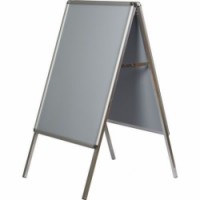 Reklamní stojan A pro prezentaci reklamních plakátů nebo fotografií. Přední strana je krytá antireflexní UV fólií. Jednoduchá výměna plakátů odklopením bočních hliníkových profilů. Stabilitu zajišťují hliníkové nohy se zkoseným plastovým zakončením. Áčka jsou určená pro použití v interiéru.Áčkové reklamní stojany P25, oblé rohy
