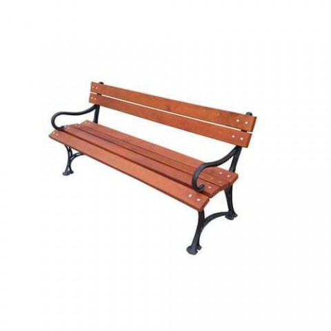 Parková lavička s elegantními područkami a opěradlem pro jakékoliv venkovní prostranství. Sedák a opěradlo vyrobené z tvrdého dřeva olše. Desky jsou frézované, leštěné a ošetřené mahagonovou impregnací. Tloušťka latí 32/35 mm (150/180 cm lavička). Šířka latí je 82 mm.Anglické lavičky s opěradlem a područkami