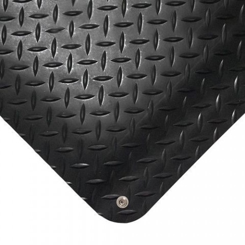 Protiskluzová antistatická rohož s diamantovým povrchem vhodná do suchých vnitřních prostor. Vlisovaná vodivá vrstva chrání před statickou elektřinou, uzemnění prostřednictvím 10mm kolíku. Nájezdové hrany proti zakopnutí pro vyšší bezpečnost. Vrchní PVC vrstva zajišťuje částečnou odolnost vůči chemikáliím a olejům. Provozní teplota od 0 °C do 60 °C. Testované na odolnost dle normy EN14041, Rv: 9,8 x 107 Ohm.Antistatická protiúnavová průmyslová rohož s diamantovým povrchem, 90 cm x 18,3 m
