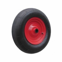 Bantamové nafukovací kolo s černou obručí a kovovým diskem. Uchycení bočním otvorem, jehlové ložisko. Dezén podélných drážek.Bantamové kolo, 400 mm, jehlová ložiska