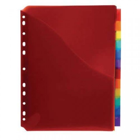 Na každém rozdružovači je kapsa pro označení uložených dokumentů. Záložky s držáky štítků pro identifikaci obsahu. Součástí je arch s prázdnými štítky.Barevné rozdružovače Exacompta, A4