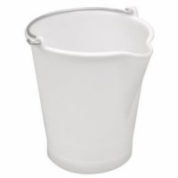 Dvojité dělení litrů i galonů. Nízkohustotní polyethylen pro vysokou odolnost. Uvedené vnější rozměry zahrnují rukojeť.Bílé vědro s výlevkou