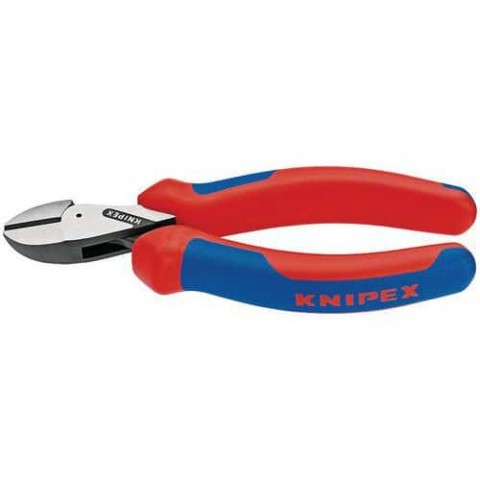 Kompaktní štípací kleště s hmotností o 25 % nižší než ostatní kleště na trhu. Štípou tenké dráty stejně snadno jako vícevrstvé kabely a pevný pružinový drát. Vysoký řezný výkon při vynaložení nepatrné síly díky optimálnímu přizpůsobení úhlu břitů a převodového poměru. Úspora 40 % síly ve srovnání se standardními silovými kleštěmi na štípání drátu stejné délky. Velká šířka rozevření na silnější kabely. Kompaktní, lehčená konstrukce. Chromvanadová vysoce výkonná ocel, kovaná, kalená v oleji.Boční štípací kleště Knipex X-Cut, 160 mm