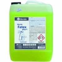 Koncentrát čisticího prostředku Fatex je vhodný k použití v průmyslové výrobě, dílnách i domácnostech. Odstraňuje oleje, mazací tuky, kuchyňská znečištění apod. V průmyslu se používá na mytí součástí strojů a motorů a na praní pracovních oděvů.Čisticí prostředek na silné znečištění Merida Fatex, 10 l