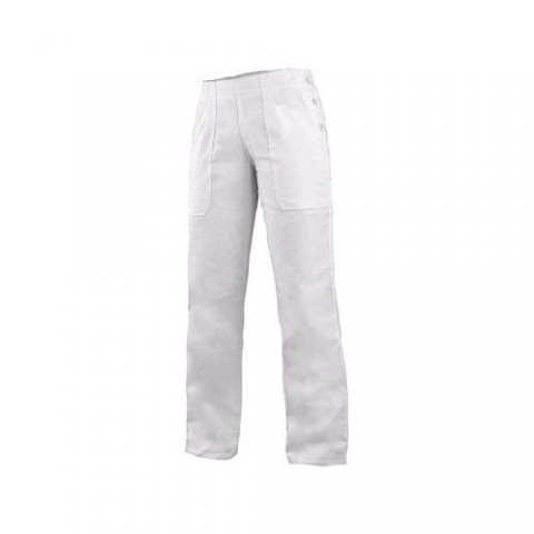 Bílé dámské kalhoty do pasu. Pevný pas s bočním zapínáním na knoflíky a v zadní části do gumy. Dvě velké přední kapsy. Vhodné pro soukromé ordinace, lázeňská zařízení, školy se zdravotnickým zaměřením apod.Dámské kalhoty CXS Darja II, bílé