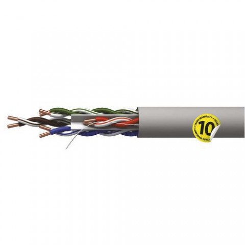 Nestíněný horizontální kabel nejvyšší kvality kategorie CAT6. Jádra vodičů vyrobeny z nerecyklované mědi. Kabel splňuje požadavky směrnice CPR o stavebních výrobcích. průměr vnitřního vodiče: 0,55 mm průměr kabelu: 6,3 mm tloušťka pláště: 1,1 mm délka: 305 m typ: UTP CAT 6 PVC, LSZH prodejní obal: 305 m, papírová krabice záruční doba: 10 let tloušťka izolace vodičů: 0,21 mm produkt: UTP kabel bez konektorů montážní teplota: +5 °C až +60 °C materiál vnitřního vodiče: měď (Cu) značení kabelu: UTP CAT 6 PVC 1 – 305 m maximální provozní vlhkost: 93 % plášť kabelu: PVC kategorie: 6 konstrukce kabelu: drát skladovací teplota: -20 °C až +60 °C barva pláště: šedá (RAL 7035) izolace vodičů: HDPE tahový prvek: nylon 150D + PE kříž AWG: 23 nejvyšší podporovaný protokol: 1000 Base-TX (Gigabit Ethernet) třída reakce na oheň: Eca nebezpečné látky: žádnéDatový kabel UTP CAT 6, 305m