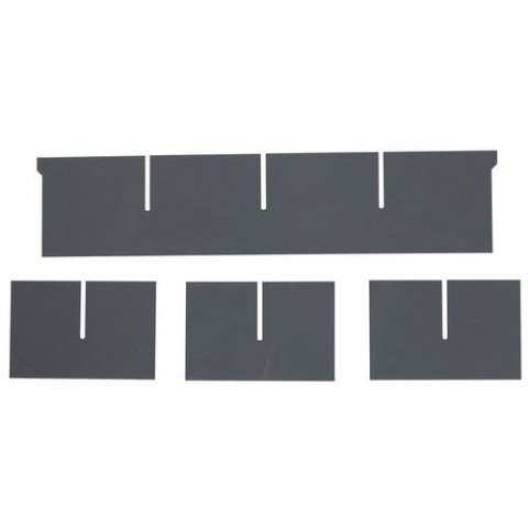 Dělicí příčky pro skříně Manutan Expert pro přehledné ukládání zboží a materiálu. Skládá se z jedné dlouhé podélné lišty a tří krátkých příčných lišt.Dělicí příčky Manutan Expert SF1, 1 + 3 ks