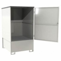 Depot s integrovanou záchytnou vanou. Záchytná vana je vyrobena ze svařované oceli. Jeho všestrannost umožňuje bezpečné uložení až 4 sudů (220 litrů) nebo IBC nádrže (1 000 litrů).Depot na sudy Manutan Expert, 220 l, 4 sudy