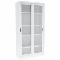Svařované skříně se čtyřmi výškově přestavitelnými policemi. Vyrobeny z ocelového plechu tl. 0,9 mm. Posuvné dveře s průhledy z tvrzeného skla šetří místo a umožňují okamžitý přehled o obsahu skříně. Uzamykatelné cylindrickým zámkem na klíč.Dílenské skříně na nářadí Manutan Expert, 200 x 100 x 45 cm