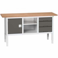 Dílenské stoly Bott Verso Storage s nastavitelnou výškou v rozsahu 83 až 93 cm. Pracovní deska tloušťky 3 mm typu multiplex, pozinkovaná police s nosností 75 kg, výškově nastavitelná. Centrálně uzamykatelné zásuvky s nosností 75 kg, výškami 12,5 a 17,5 cm a 100% výsuvem na válečkových ložiskách. Uzamykatelné skříňky (výška dveří 50 nebo 35 cm), uvnitř pozinkovaná výškově nastavitelná police s nosností 75 kg. Svařovaná ocelová konstrukce, povrchová úprava práškovým lakem.Dílenské stoly Bott Verso Storage, 83-93 x 175 x 60 cm, různá vybavení, multiplex
