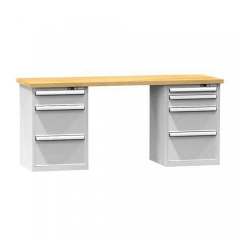 Pracovní stoly KOMBI jsou nejžádanější sestavy stolů kombinovaných ze stavebnicových nábytkových dílů. Pracovní stoly nabízíme v předdefinovaních sestavách pro každý typ v několika šířkách i hloubkách. KOMBI stoly se sestavují z pracovní desky, nohy pracovního stolu (nabízíme několik variant) nebo zásuvkové skříně, které mohou být na obou stranách stolu. Nohy je možné opatřit kolečky nebo elektro vybavením. Pracovní prostor mnohonásobně rozšíříte díky nástavbě pracovního stolu a širokému příslušenství.Dílenské stoly KOMBI NM4725, 2500 x 700 x 880 mm, MULTIPLEX