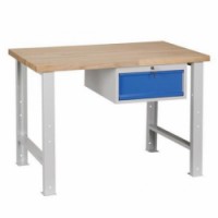 Dílenský stůl Weld ve dvou barevných variantách složený z pracovní desky, pevného podnoží a zásuvky. Stůl je stabilní a vyhovuje i náročnějším pracovním úkolům díky robustnímu provedení podnoží a vyšší váze bukové spárovky. Pracovní deska 120 x 68,5 cm z bukové spárovky tl. 4 cm, sražené hrany, bez povrchové úpravy. Maximální nosnost pracovní desky při rovnoměrném zatížení 500 kg. Svařovaná zásuvka v x š x h: 18 x 51 x 59 cm, výsuv 100%, kuličková ložiska pojezdů. Zásuvka uzamykatelná cylindrickým zámkem se dvěma klíči. Pevné podnoží z ocelového U - profilu 50 x 70 cm, tl. 3mm a ocelových plechů tl. 0,8 mm. Otvory v pracovní desce pro montáž podnoží nebo skříněk nutno předvrtat vrtákem pr. 4 - 4,5 mm (pro vrtání zvolte taková místa, kde se vyhnete spojům jednotlivých lamel stolu). Desku doporučujeme impregnovat speciálním olejem, především pokud je stůl umístěn ve vlhkém prostředí. Povrchová úprava kovových částí práškovým lakem.Dílenské stoly Weld, 84 x 120 x 68,5 cm