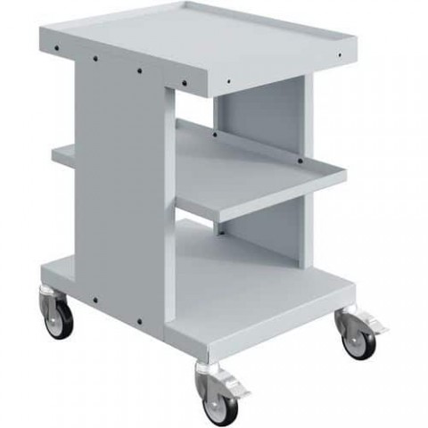 Robustní ocelový vozík s policemi. Povrchová úprava epoxidovým lakem. Snadná manipulace díky polotuhým polymerovým obručím kol.Dílenské vozíky na materiál Sofame, 3 patra, 150 kg