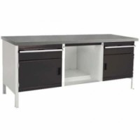 Dílenské stoly Bott Cubio Storage s pracovní deskou tloušťky 4 cm typu multiplex nebo linoleum. Nosnost až 800 kg, robustní svařovaná ocelová konstrukce, povrchová úprava práškovým lakem. Centrálně uzamykatelné zásuvky s výškou 2 x 15, nosností 75 kg a 100% výsuvem na válečkových ložiskách. Uzamykatelé skříňky s výškou dveří 35 cm, uvnitř pozinkovaná výškově nastavitelná police s nosností 100 kg.Dílenský stůl Bott Cubio Storage, 84 x 200 x 75 cm, 2 skříňky, 2 zásuvky, police, multiplex/linoleum