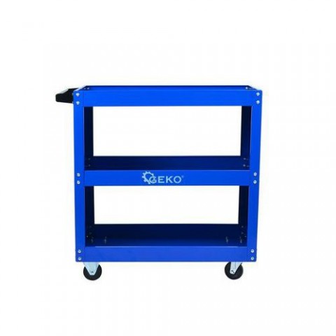 Tři dodatečně vyztužené police Světlost mezi policemi: 242 mm 2 pevná kola a 2 otočná kola s brzdami, potažená plastem, aby se zabránilo poškrábání země, jedno kolo vybavené brzdou Ergonomická šroubová rukojeť Rozměry 700X345X665mm Rozměry s držadlem a koly: 775X345X760mm Rozměr kola: 75X25mmDílenský vozík 3 police GEKO