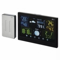 Moderní meteo stanice s bezdrátovým spojením vybavená mnoha funkcemi. Velký barevný LED dotykový displej 168 x 93 mm, s možností regulace intenzity podsvícení. Zobrazuje venkovní a vnitřní teplotu, vlhkost, tlak a aktuální fázi měsíce. Datum, kalendář a přesný čas řízený DFC signálem, který není potřeba nastavovat ani při změně letního a zimního času. Funkce teplotní výstrahy, korekce nadmořské výšky, předpověď počasí. Venkovní čidlo s velmi vysokým dosahem až 100 m. Možnost nastavení budíku s opakovaným buzením. Díky širokému pozorovacímu úhlu lze kdekoliv postavit nebo zavěsit na zeď. Napájení stanice síťovým adaptérem 5 V nebo 3x AAA bateriemi, čidlo 2x AAA bateriemi. Dosah rádia 100 m.Domácí bezdrátová meteostanice Emos E6018