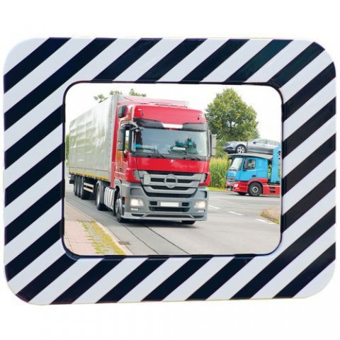 Silniční zrcadlo pro zvýšení bezpečnosti a snížení nebezpečí v potenciálně nebezpečných oblastech. Vynikající návratnost obrazu bez zkreslení díky kovovému plátu na zadní straně. Vysoká odolnost: testováno na silný vítr o síle 12 (rychlost hurikánu přesahující 117 km/h). Čtyřbodové upevnění na sloup nebo stěnu s kulovým kloubem, pevnější než běžné upevnění. Černobílý rámeček přitahuje pozornost řidičů. Polykarbonátová verze: prakticky nerozbitná.Dopravní obdélníkové zrcadlo z polykarbonátu Dancop