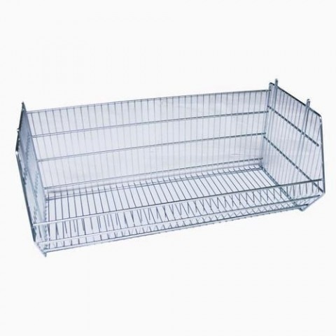 Stohovatelný drátěný koš vhodný pro skladovací účely. Polootevřená přední strana umožňuje snadný přístup i ke stohovaným košům a rychlé plnění či odebírání obsahu. Stohovatelnost bez potřeby spojovacího materiálu. Možnost dokoupení dělící mřížky a držáku na etiketu. materiál: svařovaný pozinkovaný drát rozměry v x š x h: 40 x 96 x 40 cm nosnost: 70 kg barva: stříbrná možnost dokoupení dělící mřížky a držáku na etiketuDrátěný box 40 x 96 x 40 cm