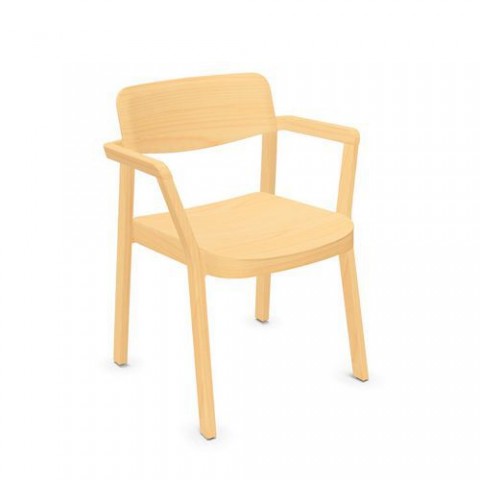 Jídelní židle opatřená pevnými područkami pro komfortní sezení v kavárnách, jídelnách a jiných společných prostorech. Opěradlo a sedák jsou vyrobené z dřevěné překližky. Lze na sebe stohovat až 5 židlí. Nohy jsou vybavené plastovými kluzáky.Dřevěná jídelní židle NowyStyl Embla