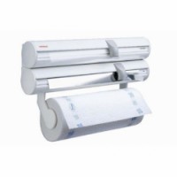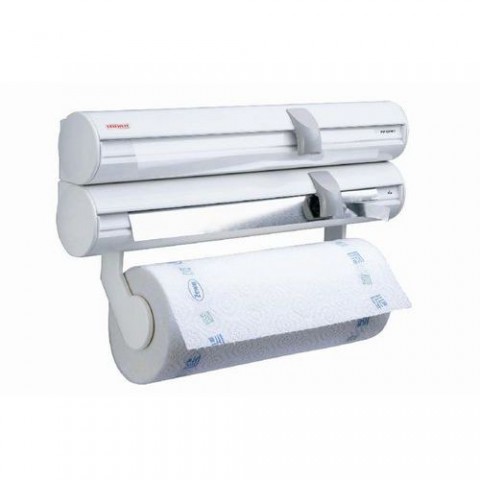 Praktický zásobník, který má odnímatelný horní držák rolí pro flexibilní použití, lze řezat folii dle potřeby rovnou při natahování na krytou potravinuDržák kuchyňských rolí ROLLY MOBIL